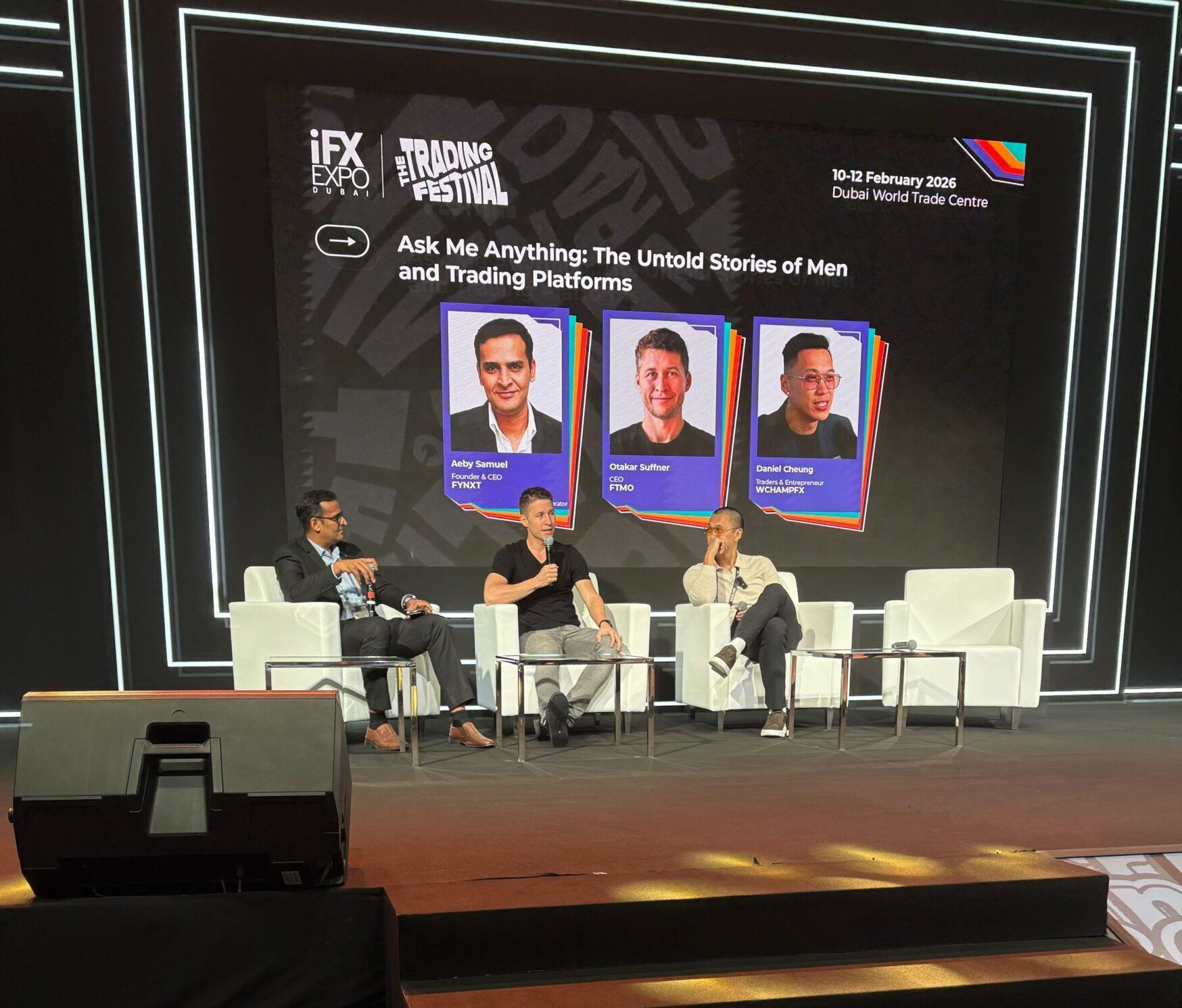 On stage were three men whose careers sit at the junction between retail brokerage, proprietary trading, and the new breed of infrastructure providers: Aeby Samuel of FYNXT, Otakar Šuffner, co‑founder and CEO of FTMO, and prop‑trading evangelist Daniel Cheung of WCHAMPFX.